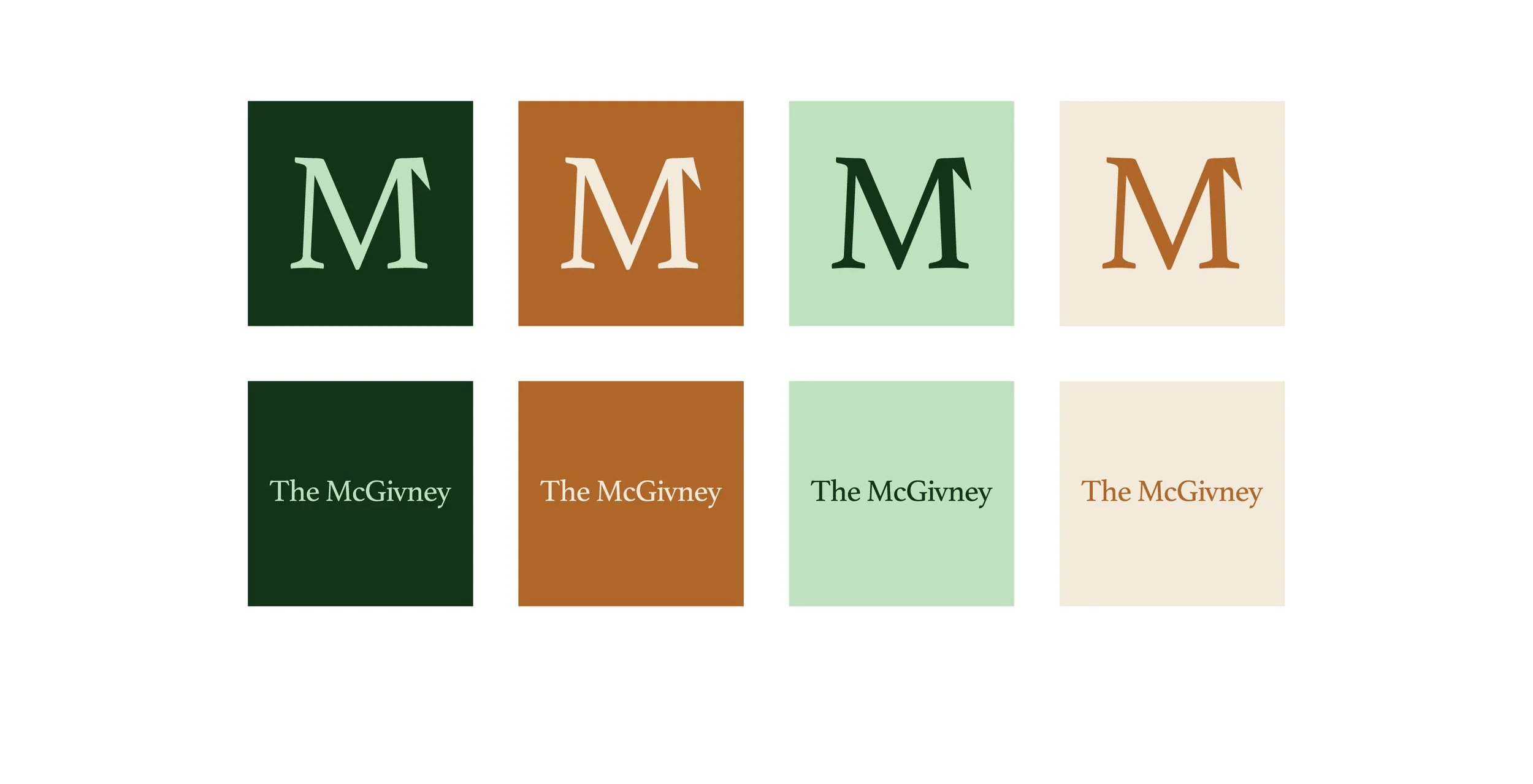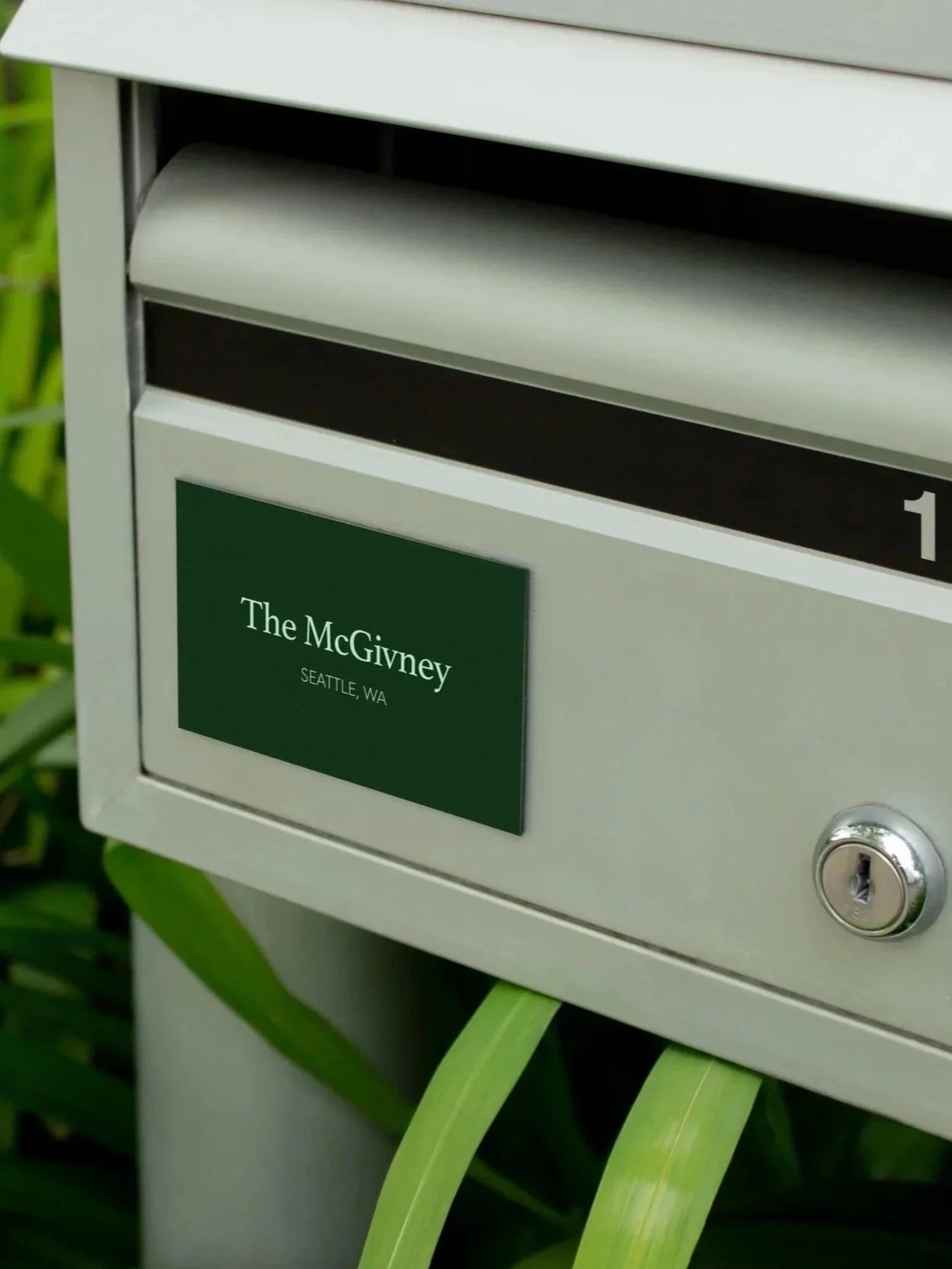 The brand is inspired by the grid pattern of the building’s location. The McGivney was created as a new apartment building from the Knights of Columbus original building, located in Seattle, Washington. This historical location plays a huge role in the design concept of The McGivney brand. Mirroring the interior design concept of utilizing the grid pattern from the map, it is reflected in the primary logo as well.